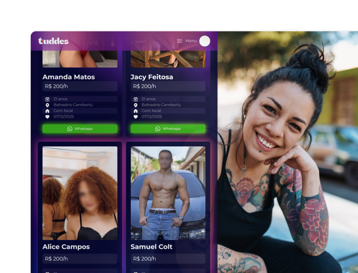 A Tuddes é uma plataforma de anúncios para todos os tipos de relacionamento. Aqui você encontra acompanhantes, criadoras de conteúdo adulto, casais, sugar e pessoas disponíveis para encontros casuais, com ou sem sexo.